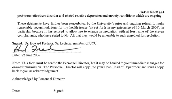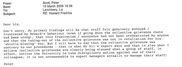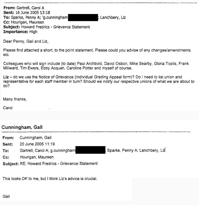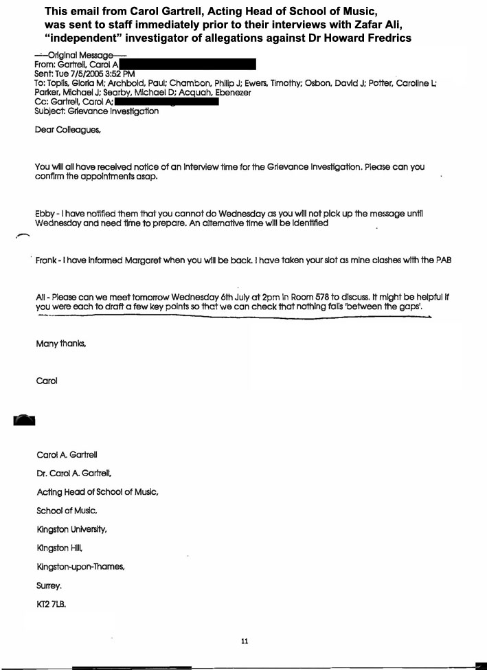 Here is a copy of the email sent to colleagues who had not signed the collective grievance against Dr Fredrics:-
