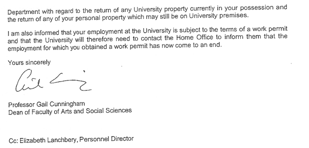 Or did she see the writing on the wall of compulsory redundancy, were she to refuse the University's offer?