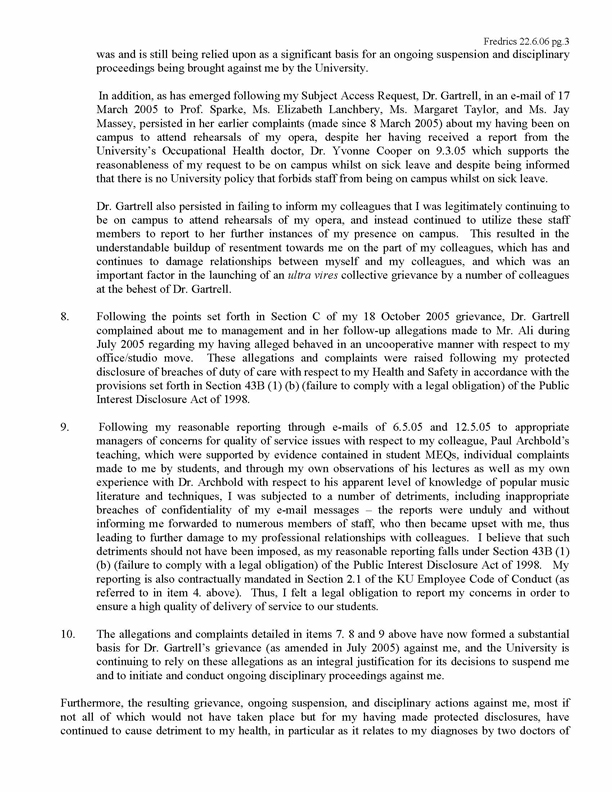Could this have been because she wanted to imply that she would consider taking legal action against the University if they didn't do what she wanted by suspending and ultimately dismissing Dr Fredrics?