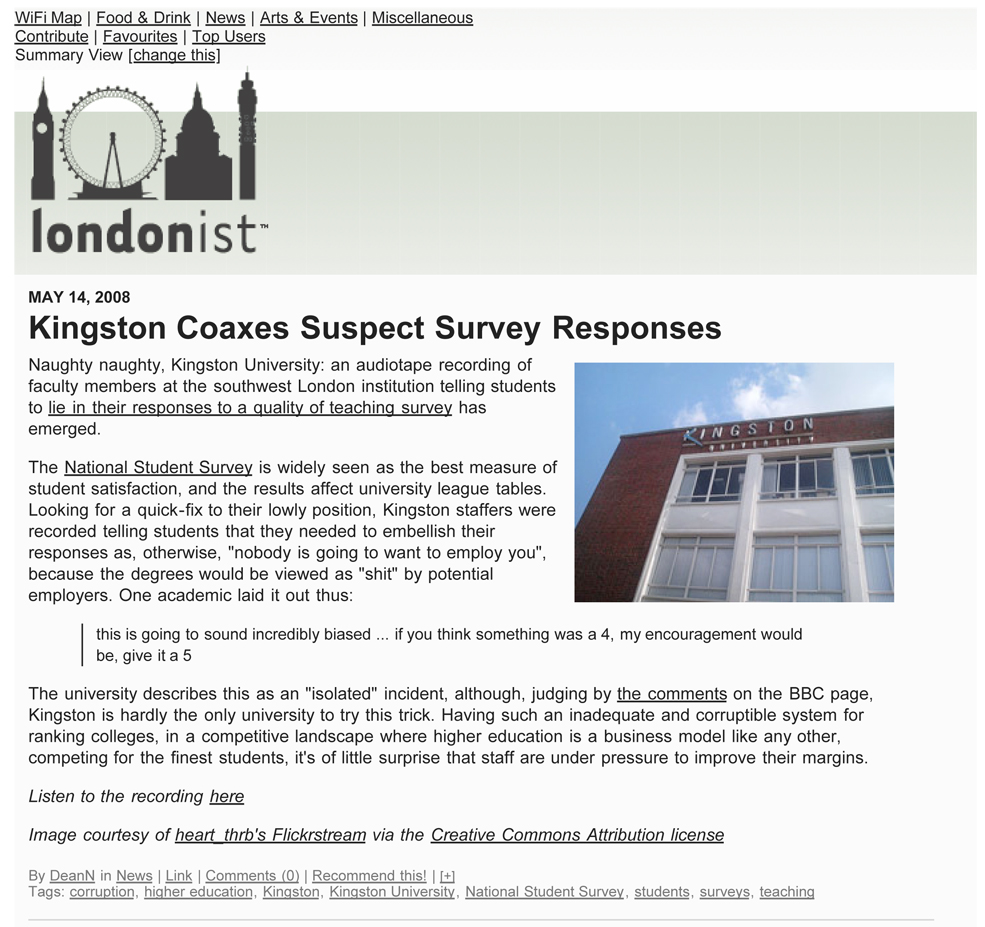 Comments from the Imperial College Student Website on the National Student Survey Scandal