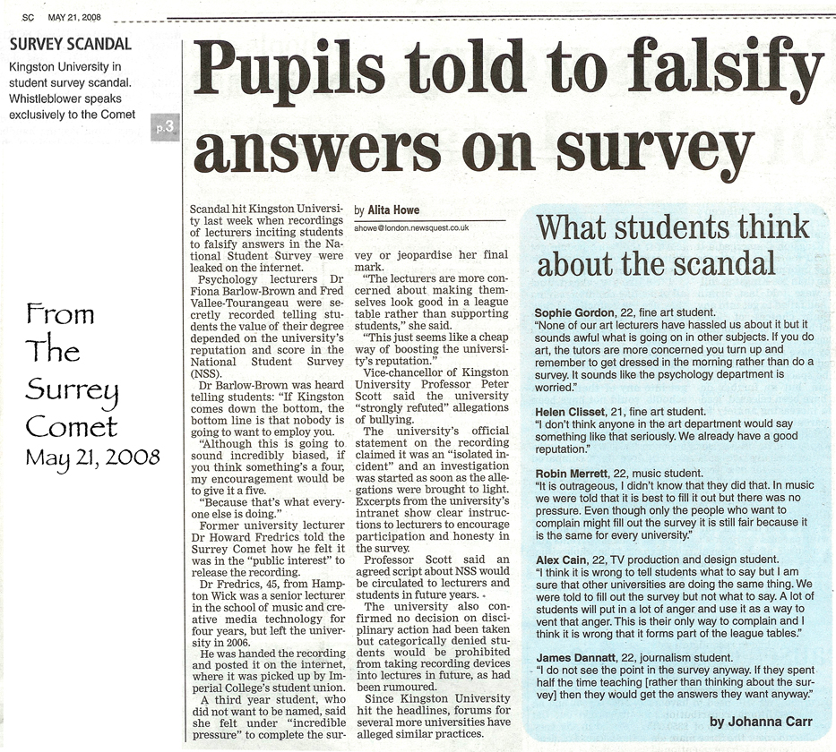 FURTHER PRESS ARTICLES ABOUT THE NATIONAL STUDENT SURVEY SCANDAL